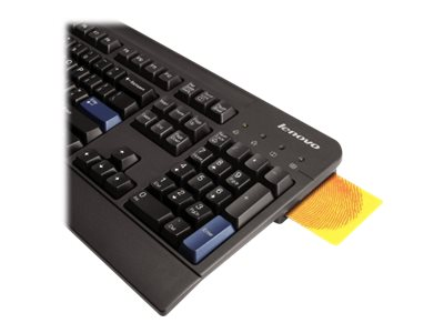 The Lenovo USB Smartcard Keyboard features an integrated smart card reader, adjustable tilt, and a two-meter cable to increase flexibility and comfort. The Lenovo USB Smartcard Keyboard can be used for identification systems, secure web applications, and to secure banking transactions and logins. A solid construction houses 104 quiet keys, including two Microsoft Windows keys. This business keyboard is available in many major languages. Lenovo smart card readers are ideal for providing user authentication for applications such as network logon, e-government, secure e-commerce, and healthcare management.